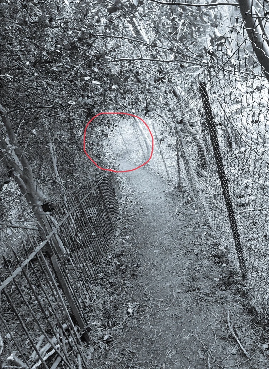 I kept schtum, and forced myself deeper into the gap between the hedges, pushing into icy mud. My red coat changed to brown, and a natural divot formed around my legs. An unfriendly stump pressed against my cheek. Everything smelt of must and old walking boots