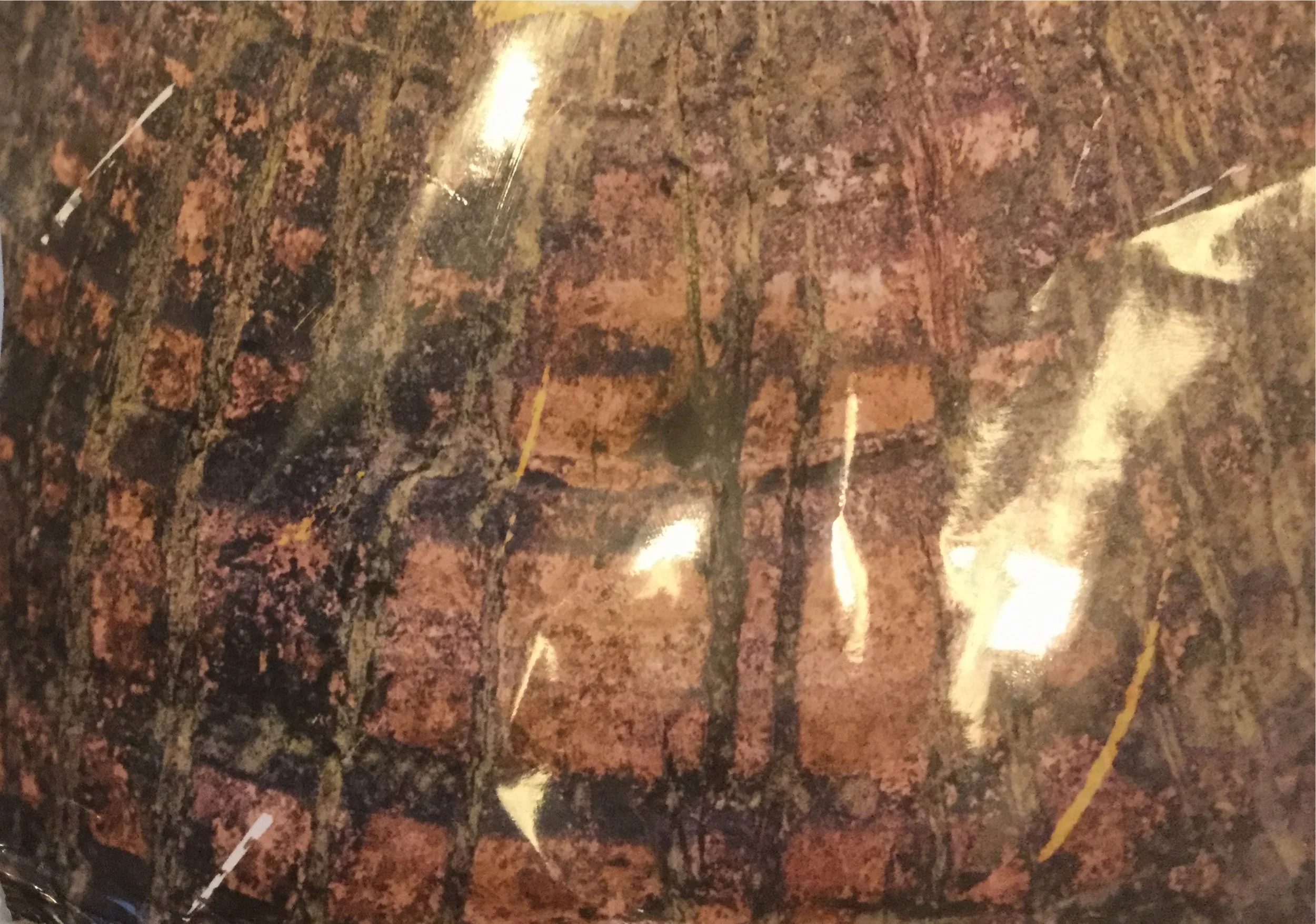 A thin honey coloured fluid drizzled from a hole in a tree, stemmed by a handful of leaves. One of the passengers hands me a cup covered in thin faces and silhouettes.